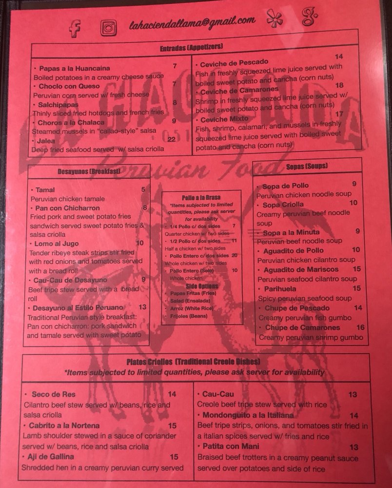 La Hacienda also offers a cozy outdoor seating area and convenient amenities, including delivery and takeout options. With happy hour specials and a selection of alcohol, it's an ideal spot for lunch, dinner, or a casual gathering with friends. Discover the true taste of Peru at La Hacienda!